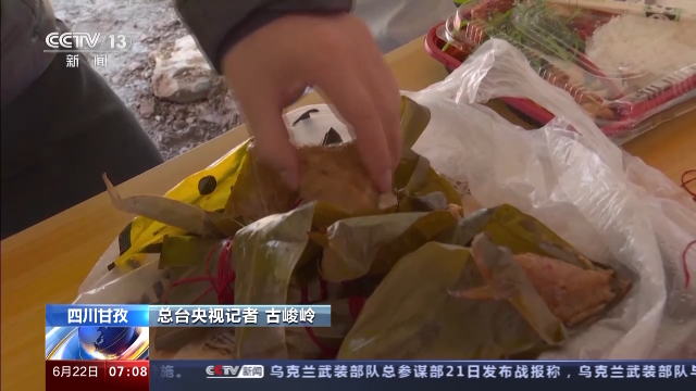 总台央视记者 古峻岭:端午一定得吃粽子,但是海拔4600米上的粽子我还是头一回吃,我来尝一尝。嗯,味道是很好,但多少有点儿夹生。这里海拔高,烧水在80多摄氏度就开了。为确保项目按时投产,工人们的午餐基本上都是在项目上的帐篷里简单吃点盒饭。