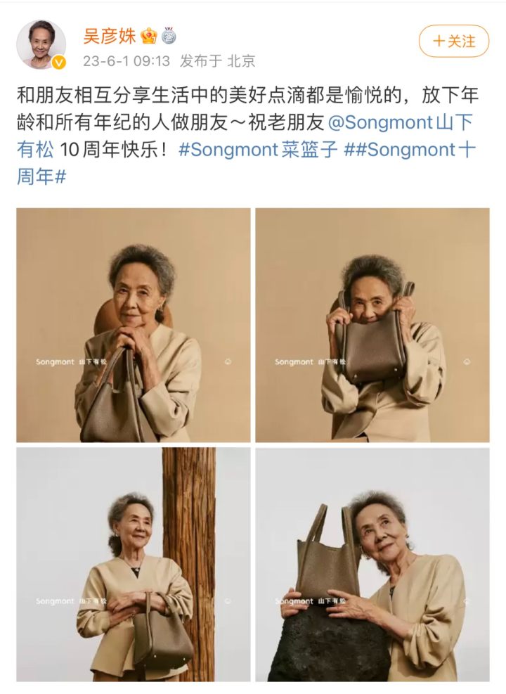 有网友也被85岁的吴奶奶感动到,这个年纪应该是早就“躺平”了,但奶奶依然敬业,依然热爱事业和生活,六一节还发了微博,真是一位有童真的奶奶啊。奶奶拍摄的这组Songmont大片,既有诗和远方又有烟火气息,温暖而治愈。比起流量明星,这样的带货更有温度,同时也因为奶奶的优雅风格种草了产品。