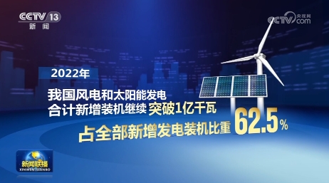 央视网消息(新闻联播):中国电力企业联合会今天(7月7日)发布的2022年电力行业基本数据显示,2022年,全国全口径发电量86939亿千瓦时,比上年增长3.6%。其中,新能源新增发电量2072亿千瓦时,占全口径新增发电量的70%,成为我国新增发电量的主体。2022年,我国风电和太阳能发电合计新增装机继续突破1亿千瓦,占全部新增发电装机比重62.5%。其中,太阳能发电比上年增长61.7%,创历史新高。