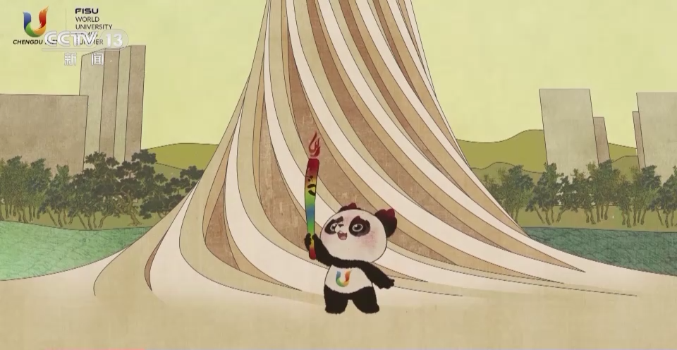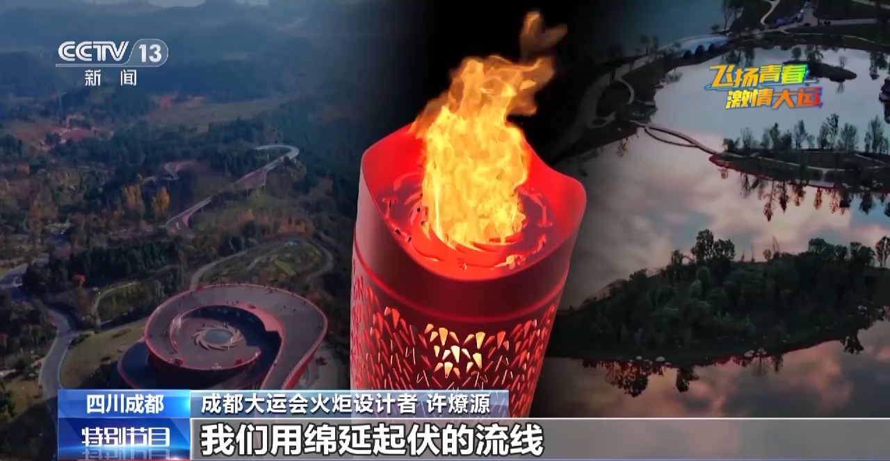 成都大运会火炬设计者 许燎源:这个火炬,它就是一个浓缩,我们用绵延起伏的流线来象征四川的山川美好,大地的绵延。形态设计上,尾部像水一样的,充满张力含蓄的温润感。从山川到水,也点明了“水润天府”,滋养了我们的农业农耕文明,滋养了我们的文化。所以我们的先民就知道星空、太阳神鸟,我们也懂得人与自然的交响,这是太美好的一种人与自然的关系了。