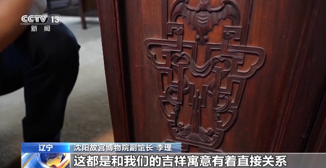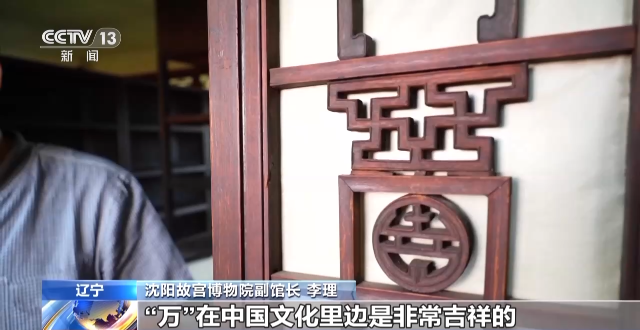 沈阳故宫博物院副馆长 李理:咱们也可以详细看一下,上边有团寿字,还有“万”字。“万”在中国文化里边是非常吉祥的,就是人也好,书也好,要更加绵长,福寿绵长,时间延续得更久。