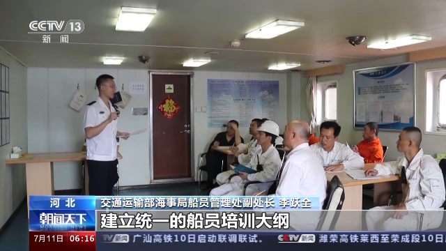 交通运输部海事局船员管理处副处长 李跃全:我们按照船员条例的要求,建立统一的船员培训大纲,船员评估规范,靠法治来保障船员的高质量发展。我们特别重视企业用什么,航海教育培训机构培训什么,我们考什么的原则,坚持政、校、企一体化来推进船员高质量发展。