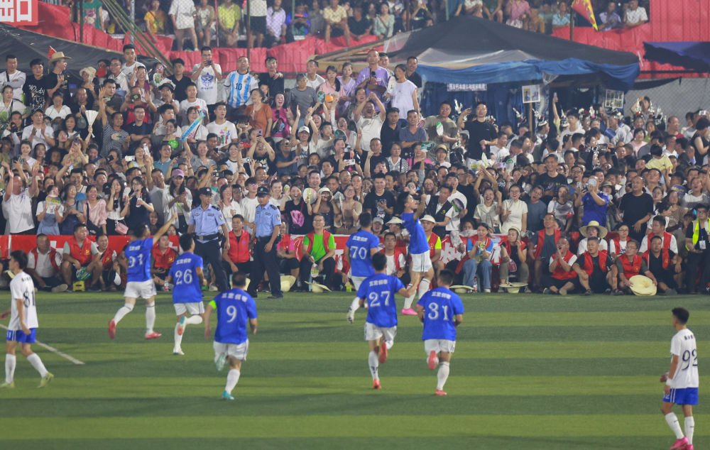 事实上,从5月13日举办以来,“村超”球场上的激烈对抗就一直在不断上演。“世界波”“贴地斩”“圆月弯刀”……参赛的“村民选手”们屡现精彩进球。