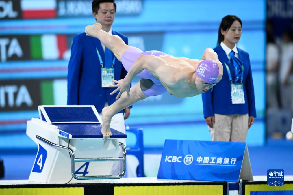 8月2日,覃海洋在比赛中入水。新华社记者 吴刚 摄