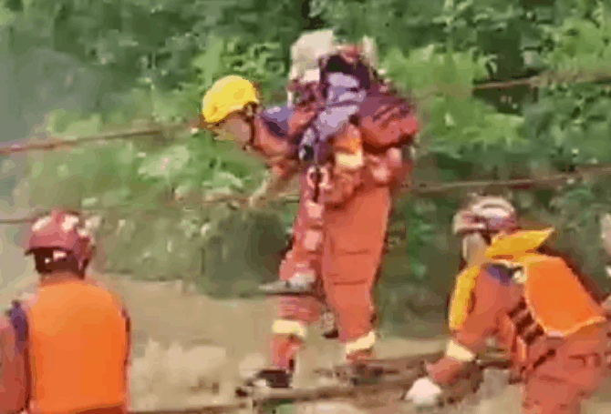 消防员背起年迈老人