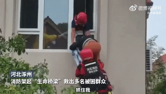 挨家挨户将被困者从窗户抱出