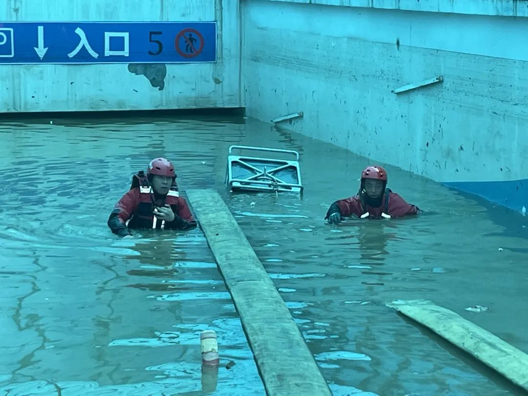 8月4日上午,沧州市消防救援支队调派4辆消防车,17名消防员,到联合七号院地下车库进行排水排涝作业。