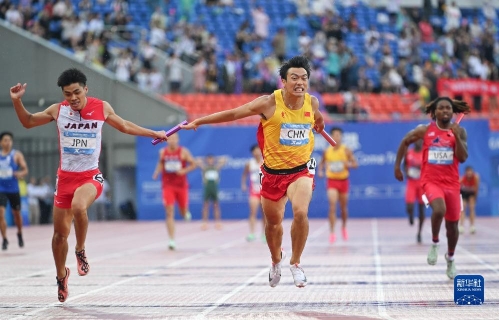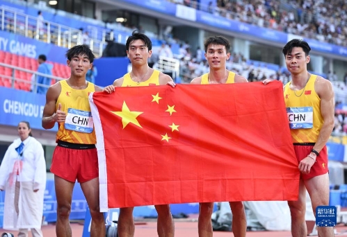当日,在成都举行的第31届世界大学生夏季运动会田径项目男子4x100米接力决赛中,中国队以38秒80的成绩获得冠军。