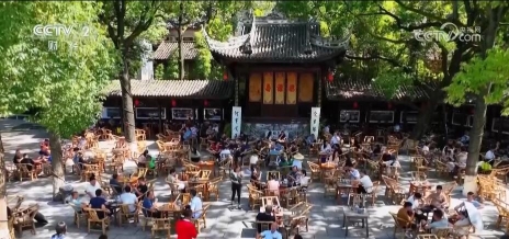 茶铺店长 包静:其实,水街开街我们这边生意还不是特别好,但是随着成都的发展跟网络达人的推广,然后游客们也是口口相传。因为外地人来成都就是三件事,吃火锅、看熊猫、喝坝坝茶,就一定要来感受一下坝坝茶。