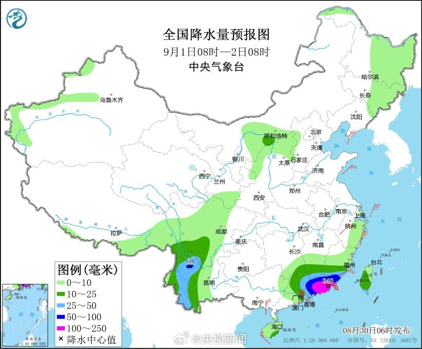 8月30日至9月2日,受台风影响,广东东部、福建、浙江、江西南部等地有大到暴雨,部分地区有大暴雨,不排除局地特大暴雨。