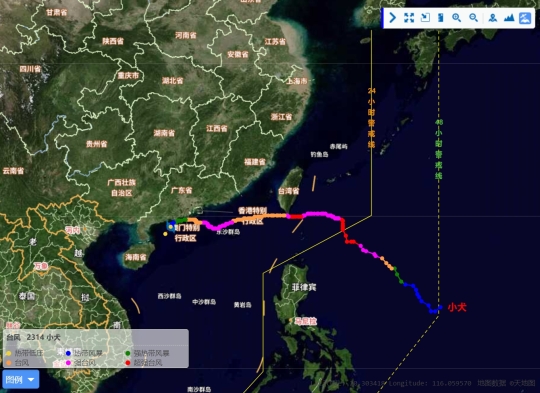台风“小犬”移动路径
