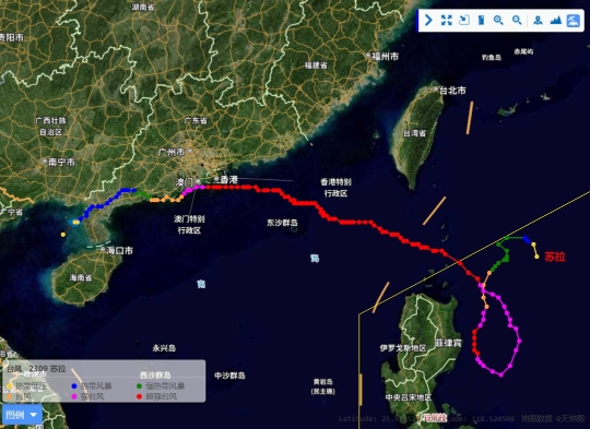 台风“苏拉”移动路径
