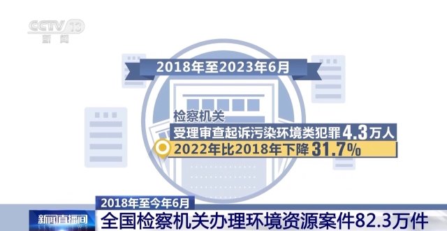 经持续严惩,污染环境类犯罪呈下降趋势。2018年至今年6月,检察机关受理审查起诉污染环境类犯罪4.3万人。其中,2022年比2018年下降31.7%。