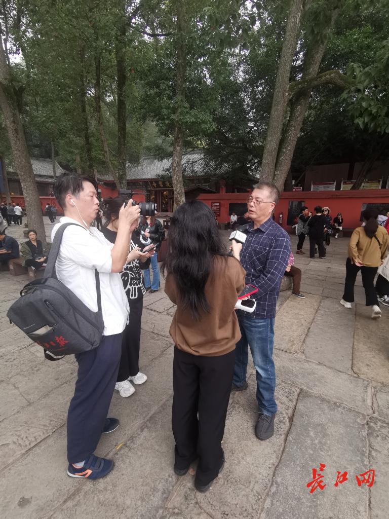 乐山大佛风景名胜景区管委会四级调研员彭学艺接受探访团采访。王筝 摄