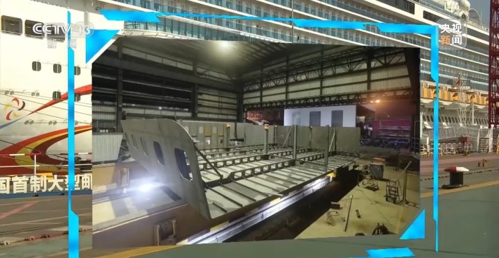大型邮轮体量庞大,工程复杂,全船安装的零件数量超过2500万个,是复兴号高铁的13倍。同时,由于邮轮体型庞大,在建造过程中,超大的船坞也是必备条件,它的面积相当于7个标准足球场。