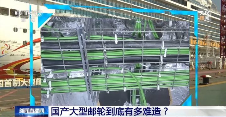 邮轮是一艘智能化船舶,全船的动力控制、信号传输、能源供给都需要中央控制系统通过全船电缆来完成。普通货船的全船电缆不到100公里,而邮轮却用到了4750公里长的电缆,比哈尔滨到三亚的距离还要远。