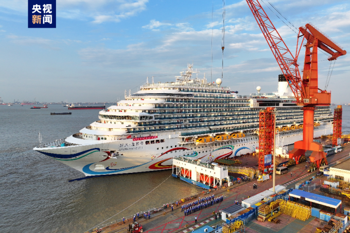 央视新闻讯 经过8年科研攻关、5年设计建造,11月4日下午,国产首艘大型邮轮在上海外高桥造船码头正式交付用户。这标志着我国成为集齐造船业“三颗明珠”,可同时建造航空母舰、大型液化天然气(LNG)运输船、大型邮轮的国家。