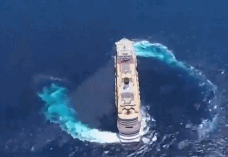 邮轮船头安装的“轮子”,叫做艏侧推。艏侧推相当于邮轮的“前轮”,它可以在航行时给邮轮提供侧向动力,让邮轮可以原地掉头。