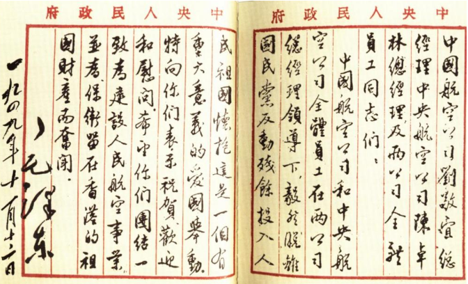 毛泽东同志高度称赞“两航”起义重大成果。起义归来的飞机成为了新中国民航事业最早的机群主体。从香港归来的航空人才、运回的航材设备,为新中国民航发展奠定了重要基础。回顾这段惊心动魄的历史,正是“两航”员工的大义凛然与隐蔽战线的周密筹划相向而行,谱写了新中国发展史上的精彩篇章。