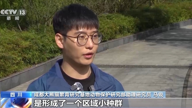 成都大熊猫繁育研究基地动物保护研究部助理研究员 马锐:现在全国大概有超过70%的大熊猫是形成了一个区域小种群,大概有33个小种群存在灭绝风险,我们去做大熊猫的野化放归,就是要去很直观地补充这些区域小种群的数量,以达到基因多样性,去复壮这个小种群。