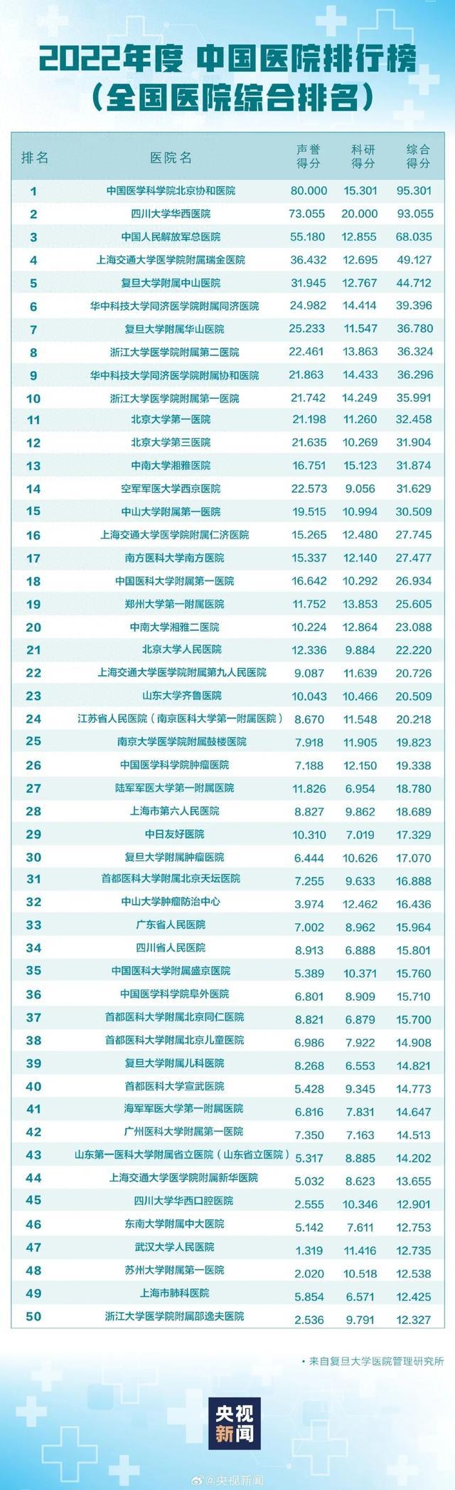 也是复旦版中国医院排行榜连续第十四年发布