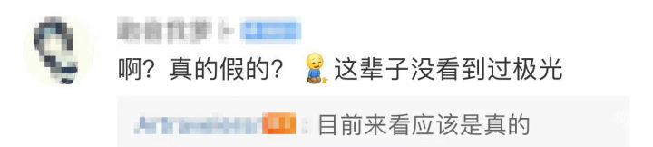 不少网友表示:这个维度都能拍到极光?活久见!真的假的?这辈子没看到过极光!