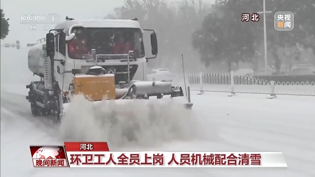 从13日上午开始,河北出现大范围降雪,河北省气象台今天发布暴雪黄色预警,保定、廊坊以南地区有大雪到暴雪,预计邢台市东部局地雪量可达15毫米以上。为保障市民出行安全,当地环卫部门3700多名环卫工人全员上岗,及时喷洒融雪剂,出动雪铲车,积极开展清除冰雪工作。