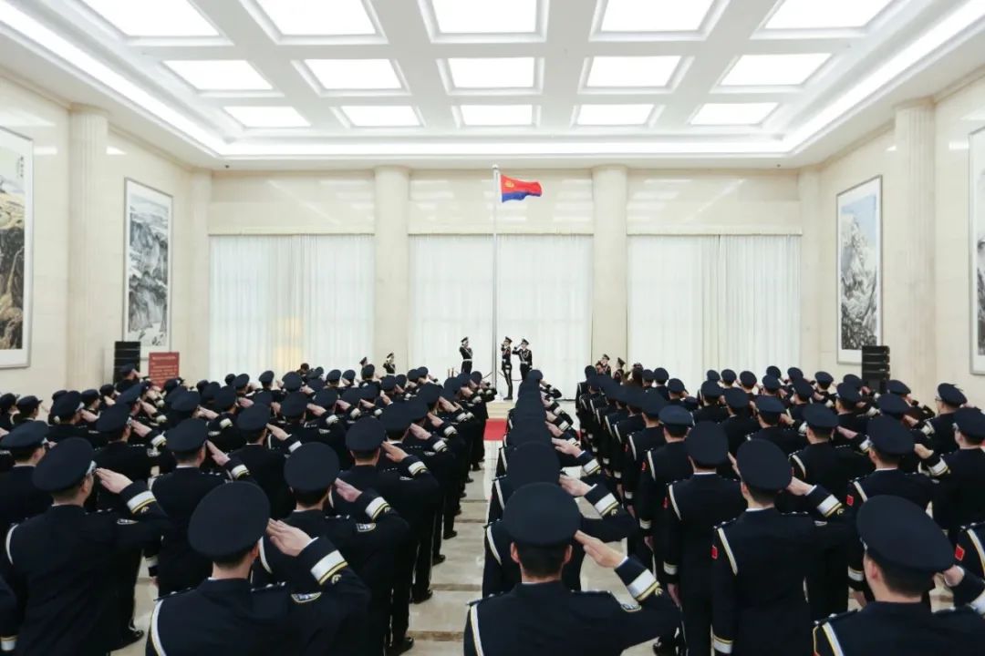 活动现场,全体国安干警代表身着警礼服,精神抖擞,整齐列队,警旗护卫队员迈着铿锵步伐,护卫中国人民警察警旗行进就位。“升警旗,奏《国家安全战士之歌》,敬礼!”伴着一声嘹亮的号令,中国人民警察警旗徐徐升起,全体国安干警代表面向警旗庄严敬礼。