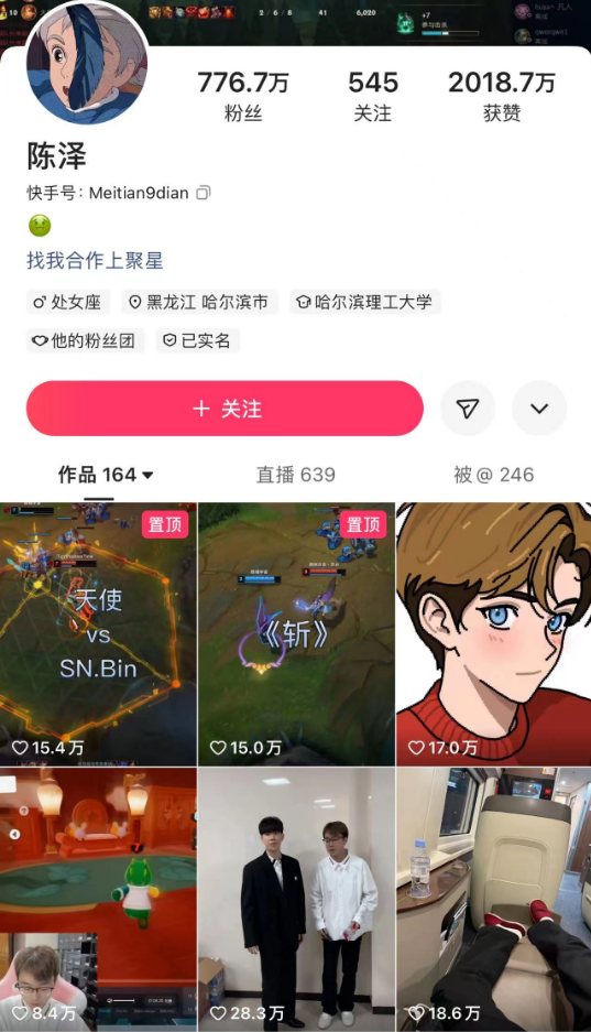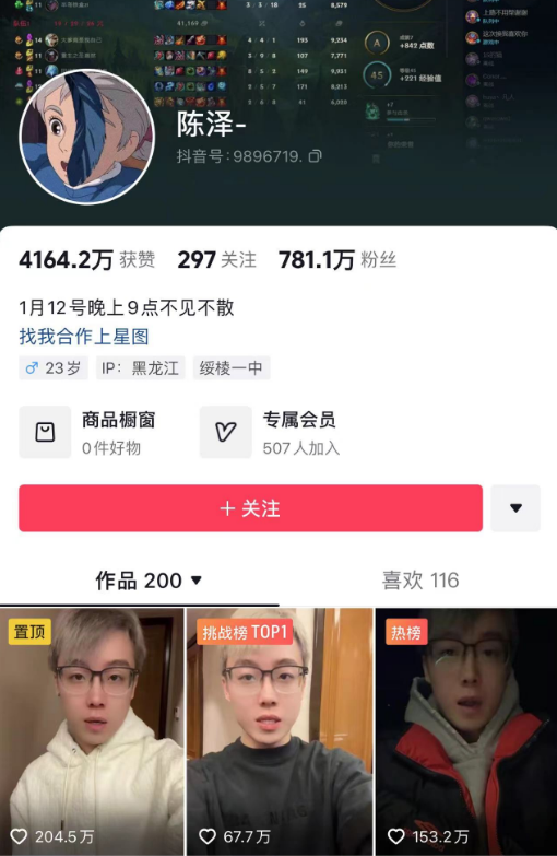 据了解,陈泽是继旭旭宝宝和张大仙之后的顶尖游戏主播之一,拥有极高的人气,在快手和抖音上各有700多万粉。