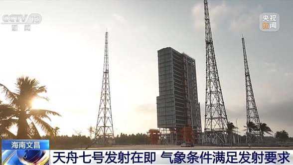 文昌航天发射场科技人员 樊晶:关键节点之前,我们都会跟地方海南省气象局进行一个联合的气象会商,通过两家的联合会商得出一个最终的结论。从最新的气象会商结果来看,发射日天气比较好,多云渐晴,满足发射的气象条件。