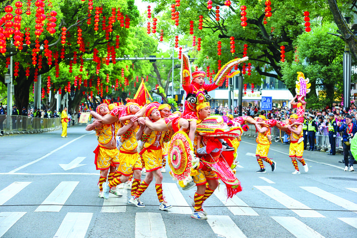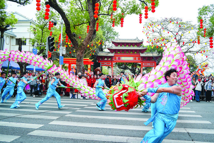 2月24日,这是巡游中的湖南板板龙灯舞。