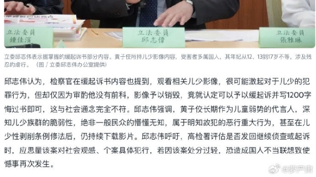 台湾“妇女救援基金会”认为,公众人物花费高额金钱,把个人性欲满足建立在被害人身心痛苦上,应该加重罚则,以遏制更多未成年及成年性剥削影像被贩卖营利。但司法却仅处以缓起诉2年和罚款,可能会让民众产生错误观念,助长非法性影像被营利贩卖和数字性暴力犯罪案件增加。