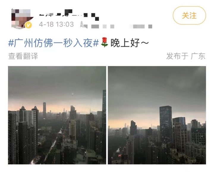 都市快报讯 今天10时后,受飑线移近的影响,广州仿佛“一秒入夜”,网友们纷纷晒出照片。