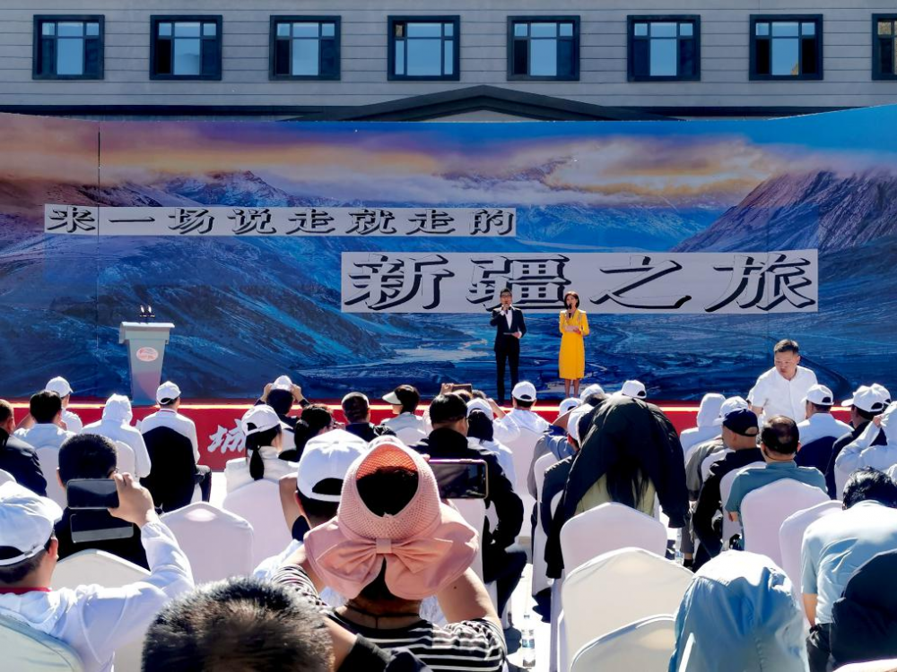 6月1日,新疆独库公路通车仪式在塔城地区乌苏市乌苏驿举行现场(薛玲摄)