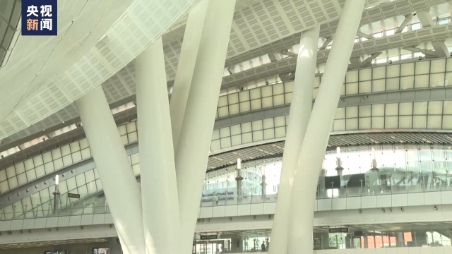 总台记者 金东:西九龙站建筑特色别具一格,它的外墙采用大型玻璃幕墙设计,由4000多块形状不一的玻璃组成,环保节能,自然采光。