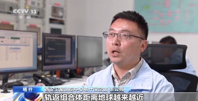 西安卫星测控中心喀什深空站 张云亮:轨返组合体距离地球越来越近,岗位人员严密监视设备状态调整,及时调整设备参数,保持设备良好的运行状态。