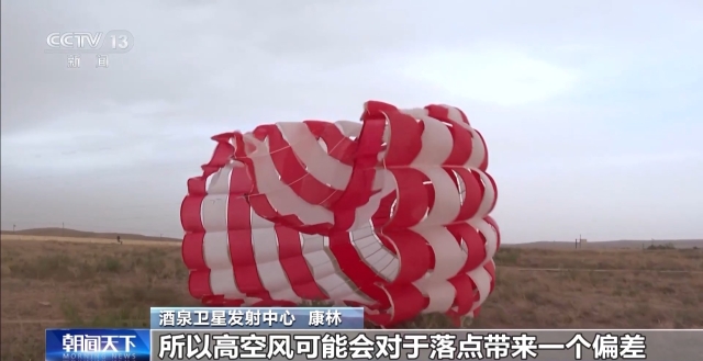 酒泉卫星发射中心 康林:返回舱开伞之后已经是无动力的这样一个状态,所以高空风可能会对于落点带来一个偏差。我们必须要以高空风作为一个输入,然后再做一个落点的预报,精确的高空风预报可能会帮助我们的地面分队、空中分队更快地找到返回舱。