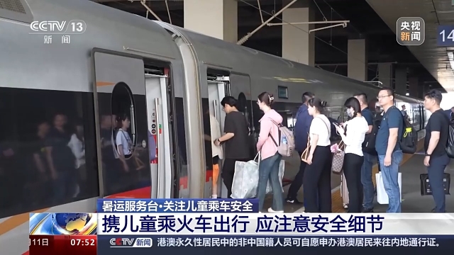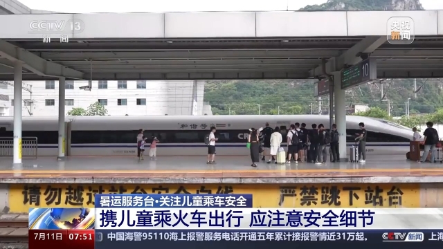 暑运期间,火车站客流较大,铁路部门提醒,出行时要注意看管好儿童。在站台等车时切勿越线,在上下车时要注意站台与列车间隙,防止意外发生。