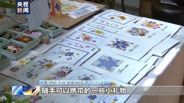 上海武康路某花店负责人 黄秋平:4月中旬之后,发现很多背着包的外国客人。因为他们是短期来这边玩,他们可能会带走一些随手可以携带的小礼物。