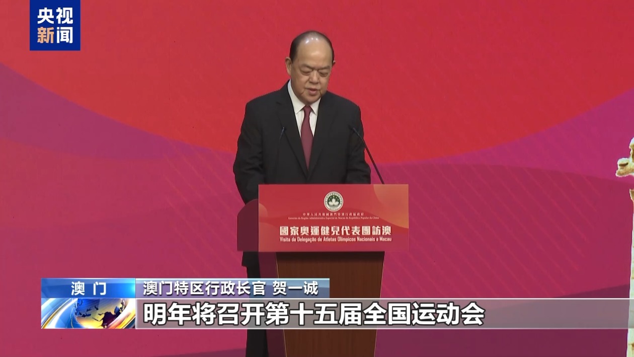 总台记者 肖中仁:澳门特区行政长官贺一诚在致辞中还特别提到,希望广大的澳门青少年和运动员以国家队运动员为榜样,学习他们的顽强拼搏和爱国精神,将中华体育精神和时代精神弘扬光大。
