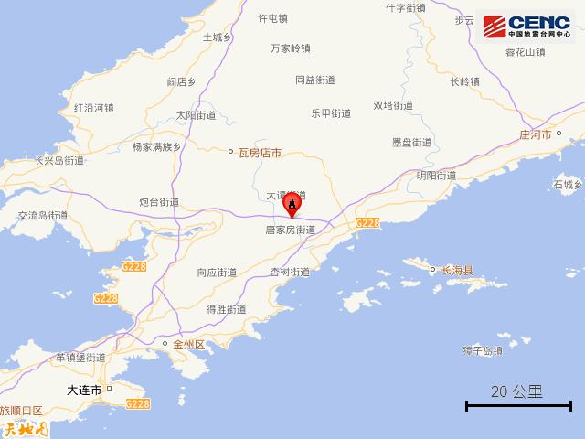 辽宁大连市普兰店区附近发生3.8级左右地震