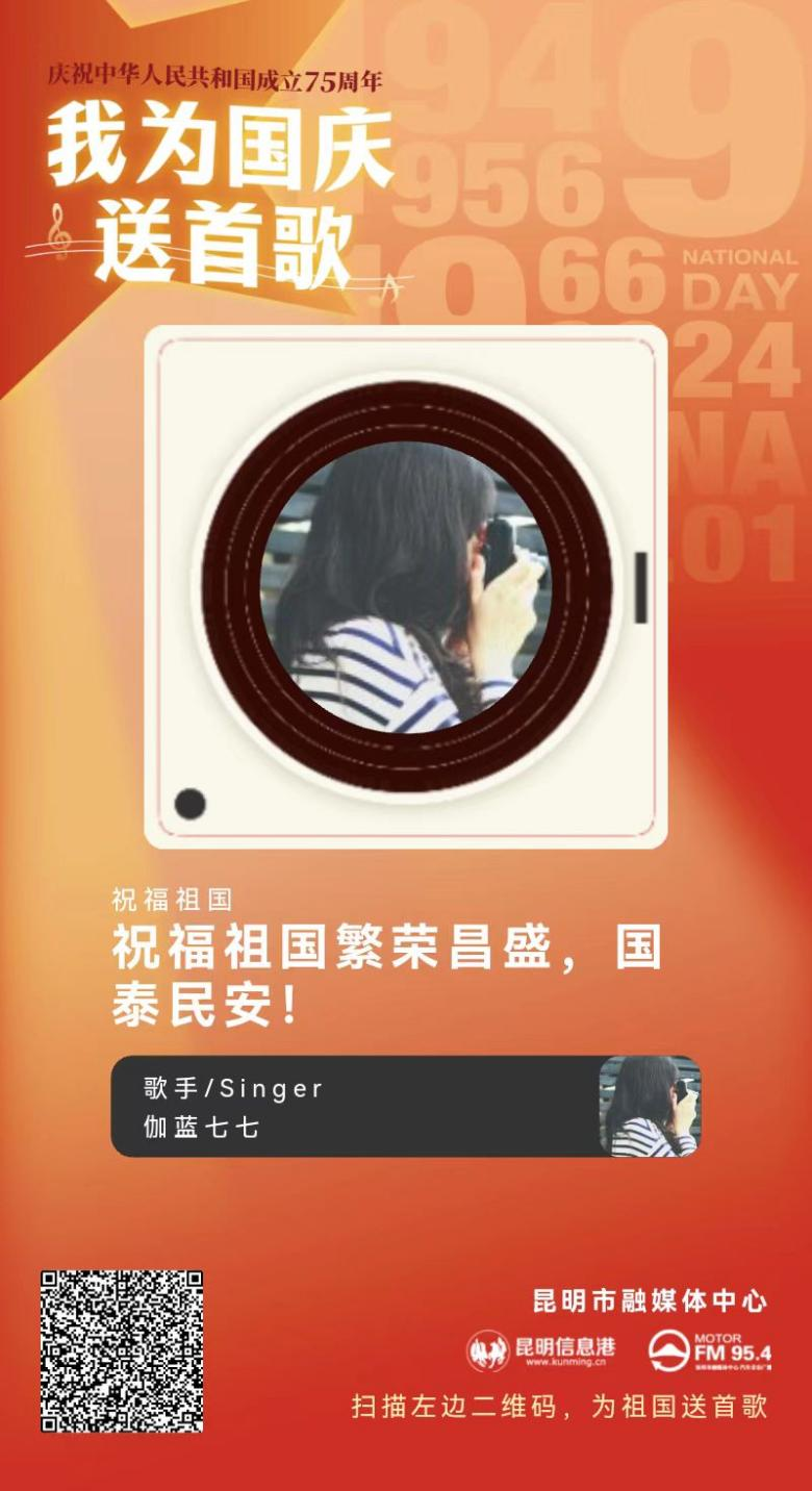 方式四,关注新浪微博“昆明信息港”,找到“我为国庆送首歌”话题,扫描二维码进行参与。