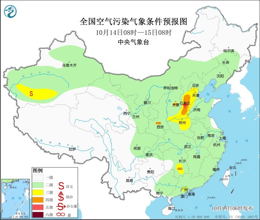 预计,10月14日早晨至上午,河北中南部、北京、天津西部、山东西部、山西中东部、陕西北部、河南东北部和南部部分地区、湖北中部等地有大雾天气,其中,河北中南部、北京西部、山西中部、陕西北部、湖北中部等地的部分地区有能见度低于500米的浓雾,局地有不足200米的强浓雾。中央气象台14日06时继续发布大雾黄色预警。