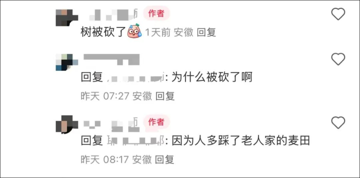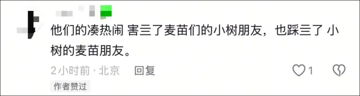 有网友痛心表示:凑热闹的人,害死了麦苗的小树朋友,也踩死了小树的麦苗朋友。