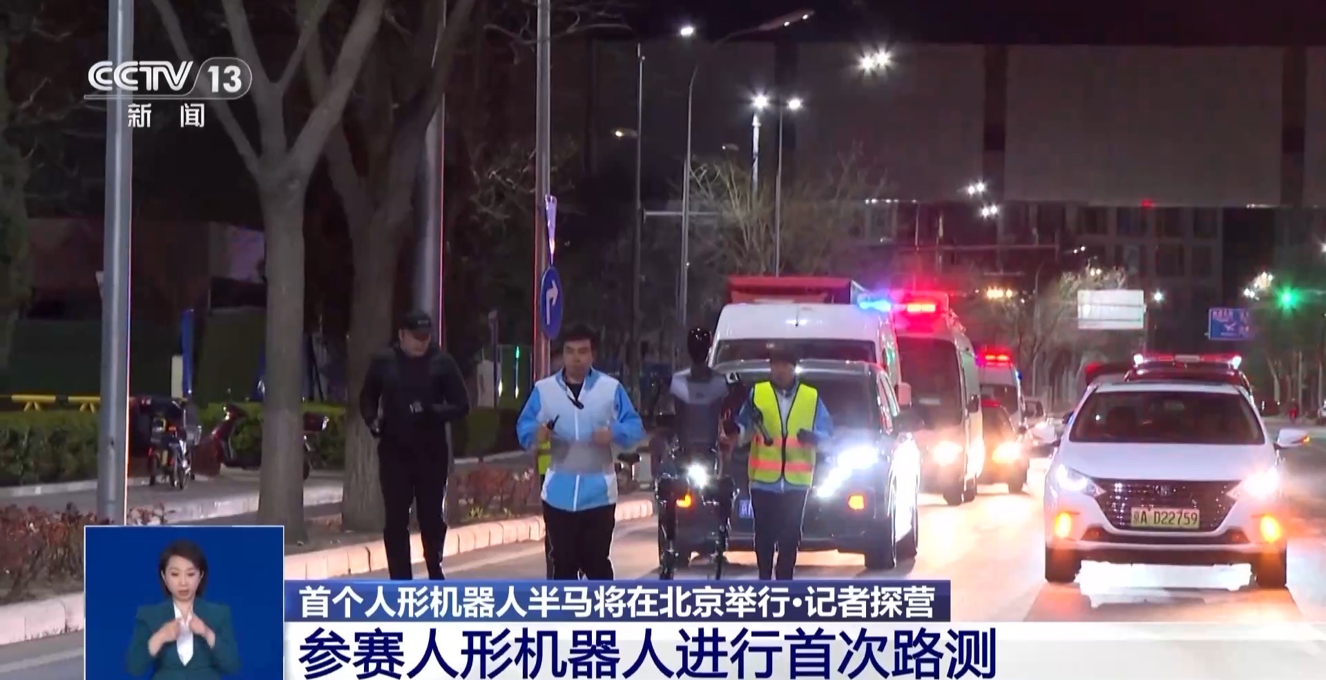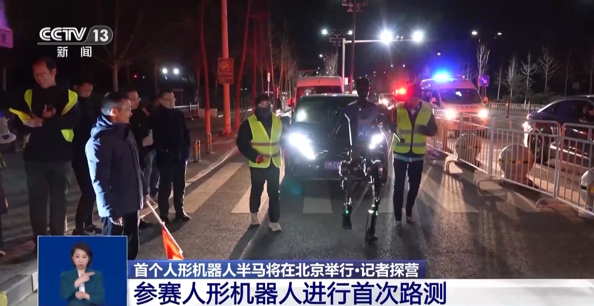 3月28日晚,在北京亦庄,报名参加北京亦庄半程马拉松的机器人进行了第一次实地路面测试。