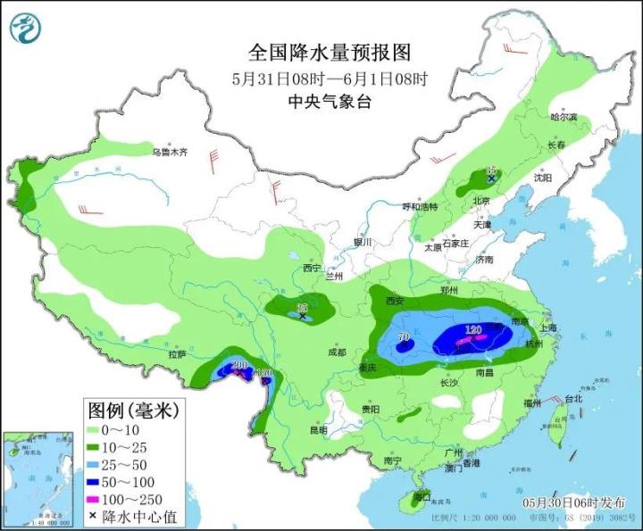 气象部门预计,降雨最强时段(5月31日至6月1日),长江中下游沿江地区将为核心影响区域,其中湖北东部、湖南北部、安徽南部、江西北部、浙江中西部及西藏东南部等地部分地区有暴雨、局地大暴雨并伴有局地短时强降水、雷暴大风等强对流天气。