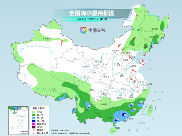 受台风影响,广东、广西、海南等地今明天强风雨持续,今夜起随着冷空气南下与台风外围环流结合,湖南、江西、浙江、福建也将有强降雨。另外,今起三天华北地区、内蒙古中东部、东北地区等地有一次明显的降雨过程,部分地区有中到大雨,局地暴雨,并伴有短时雷雨大风或冰雹等强对流天气。