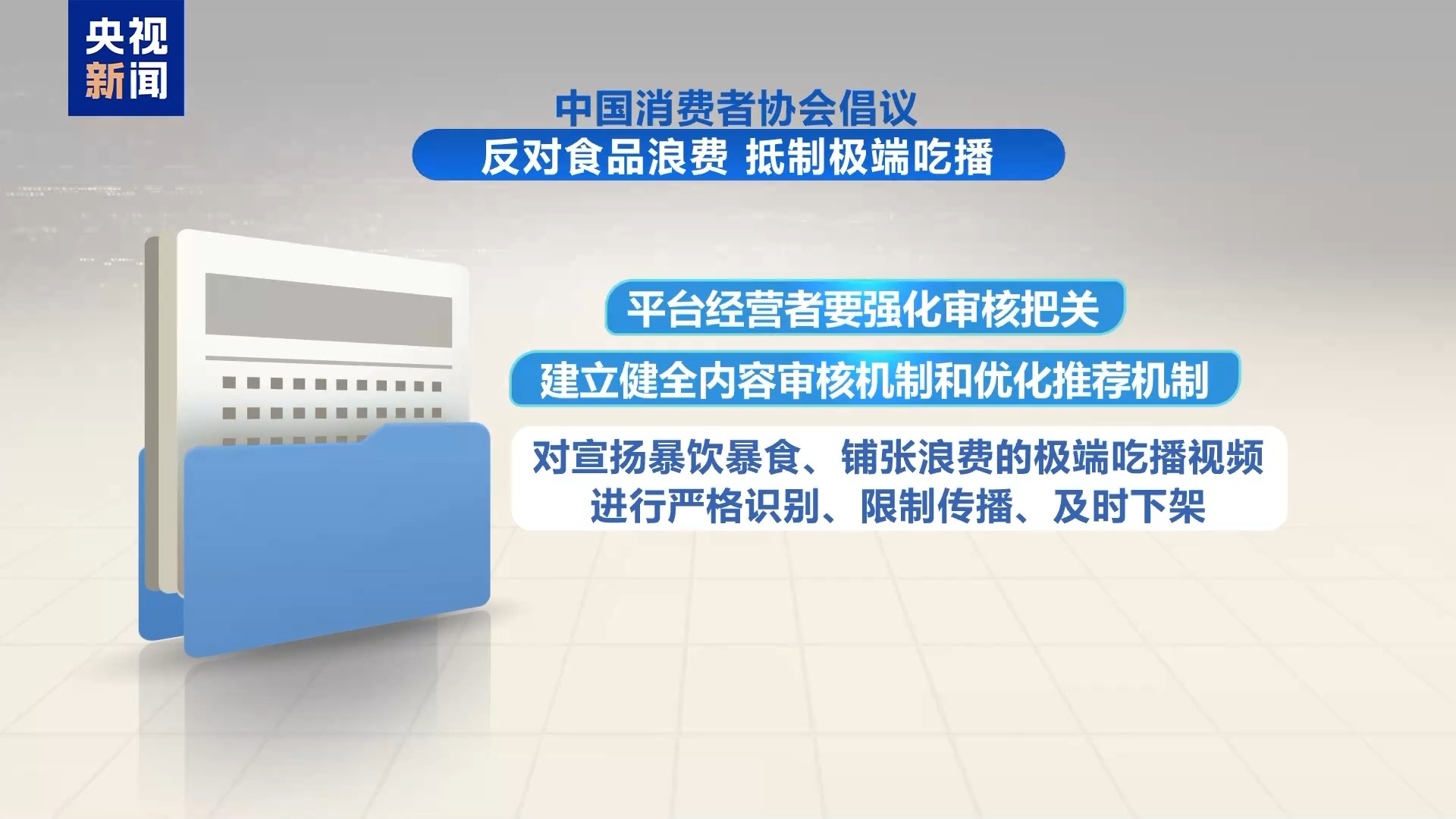 平台经营者要强化审核把关,建立健全内容审核机制和优化推荐机制,对宣扬暴饮暴食、铺张浪费的极端吃播视频进行严格识别、限制传播、及时下架;要加强正向引导,积极推荐节约粮食、健康饮食的公益宣传内容,营造健康网络环境。