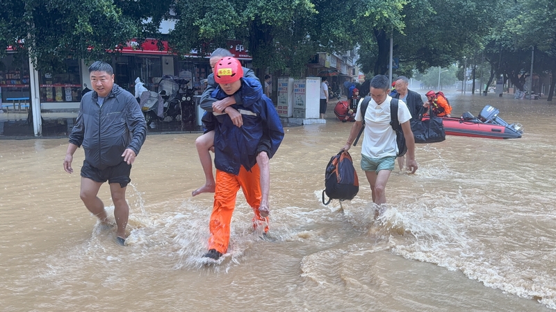 人民网榕江6月24日电 6月24日,受持续强降雨及上游来水叠加影响,贵州省黔东南州榕江县境内平永河、寨蒿河、都柳江水位持续快速上涨,县城多处低洼地带被淹。