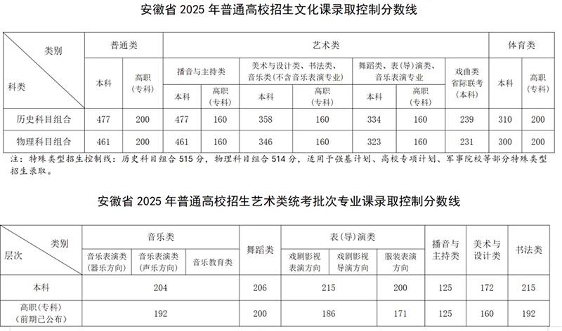 人民网合肥6月25日电 6月25日,经安徽省招委会议审议批准,安徽省教育招生考试院公布安徽省2025年普通高校招生录取控制分数线。